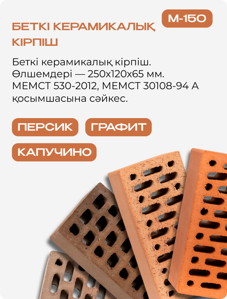 | Кірпіштің көлемдік салмағы | 1 400 кг/м³ |