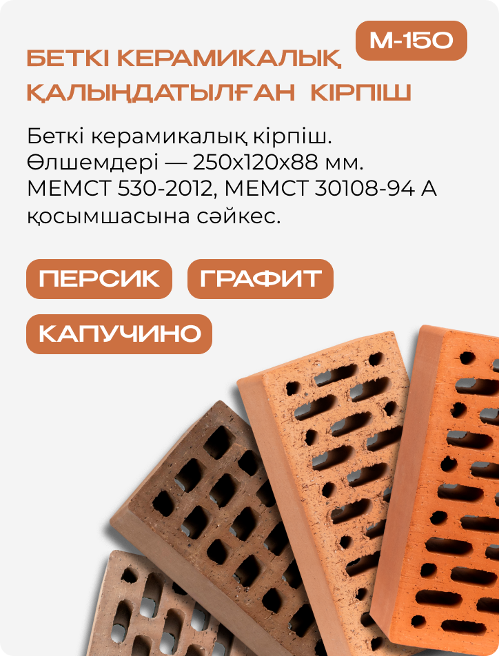Қалыңдатылған қапталған керамикалық кірпіш. Өлшемдері —
